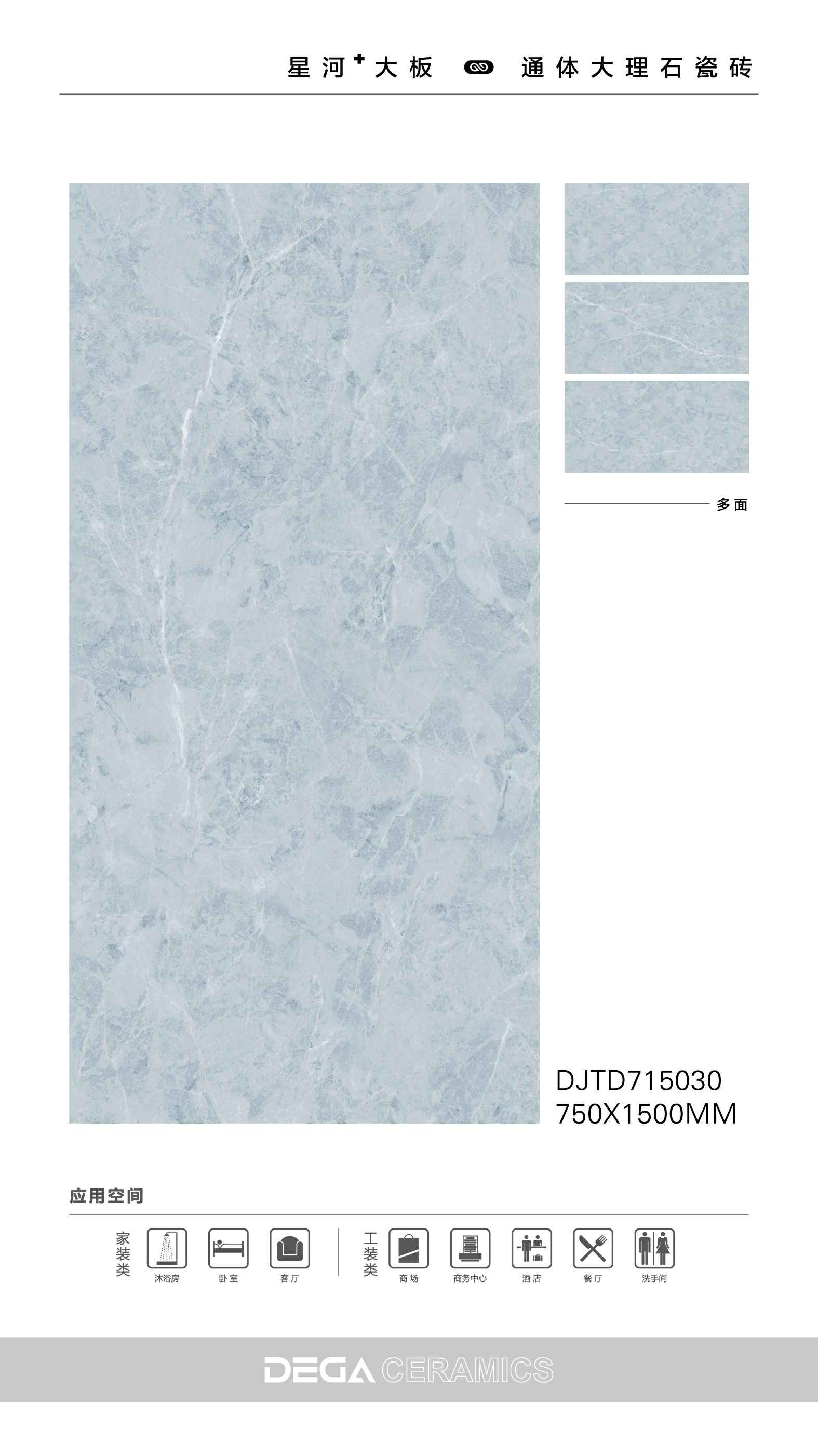 从规格形式的选择、纹理的趣味,到丰富内涵的表现、文化的传承等…… 都是她的每一侧面,在750X1500MM创造的舞台中央,是属于一片瓷砖传奇剧的演出。